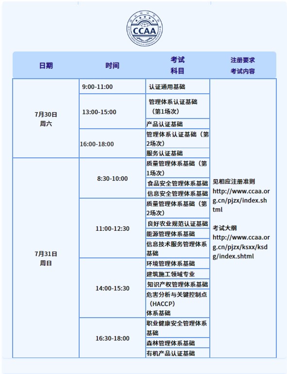 CCAA發布《關于恢復2022年第1期認證人員注冊全國統一考試及相關安排的通知》