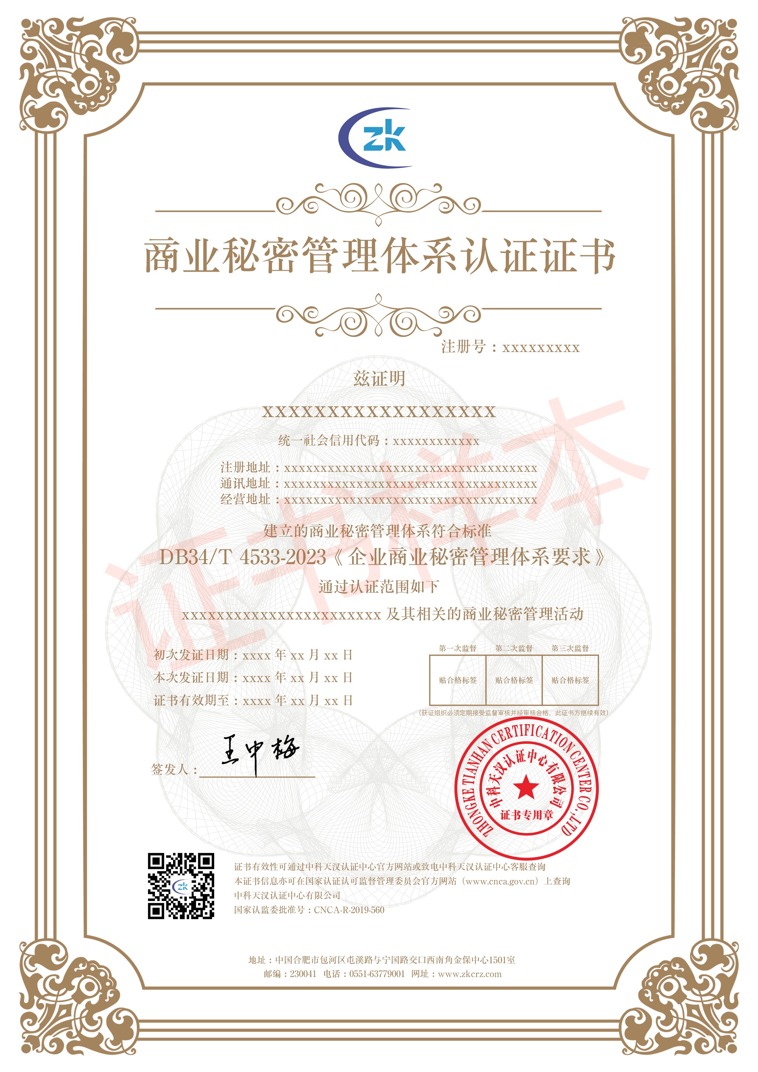 商業秘密管理體系認證證書